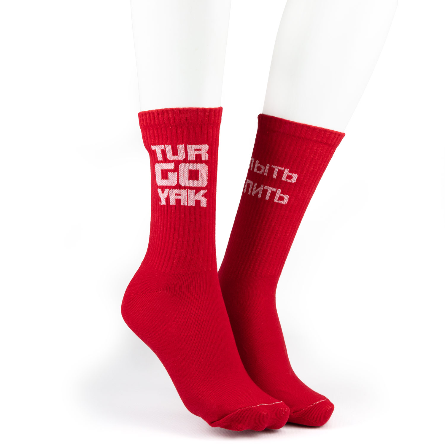 Носки красного цвета от бренда «Тургояк Территория Спорта» с надписью «Плыть и пить» и логотипом «TurGOyak». Изготовлены из мягкого хлопка (85 %), полиамида (12 %) и эластана (3 %) для плотной посадки, воздухопроницаемости и износостойкости. Универсальны — подходят для любого времени года, обеспечивают комфорт при повседневной носке и активном образе жизни. Идеально сочетаются с кроссовками, кедами, дополняя спортивный или повседневный образ. Практичность, качество и фирменный стиль в каждой паре.