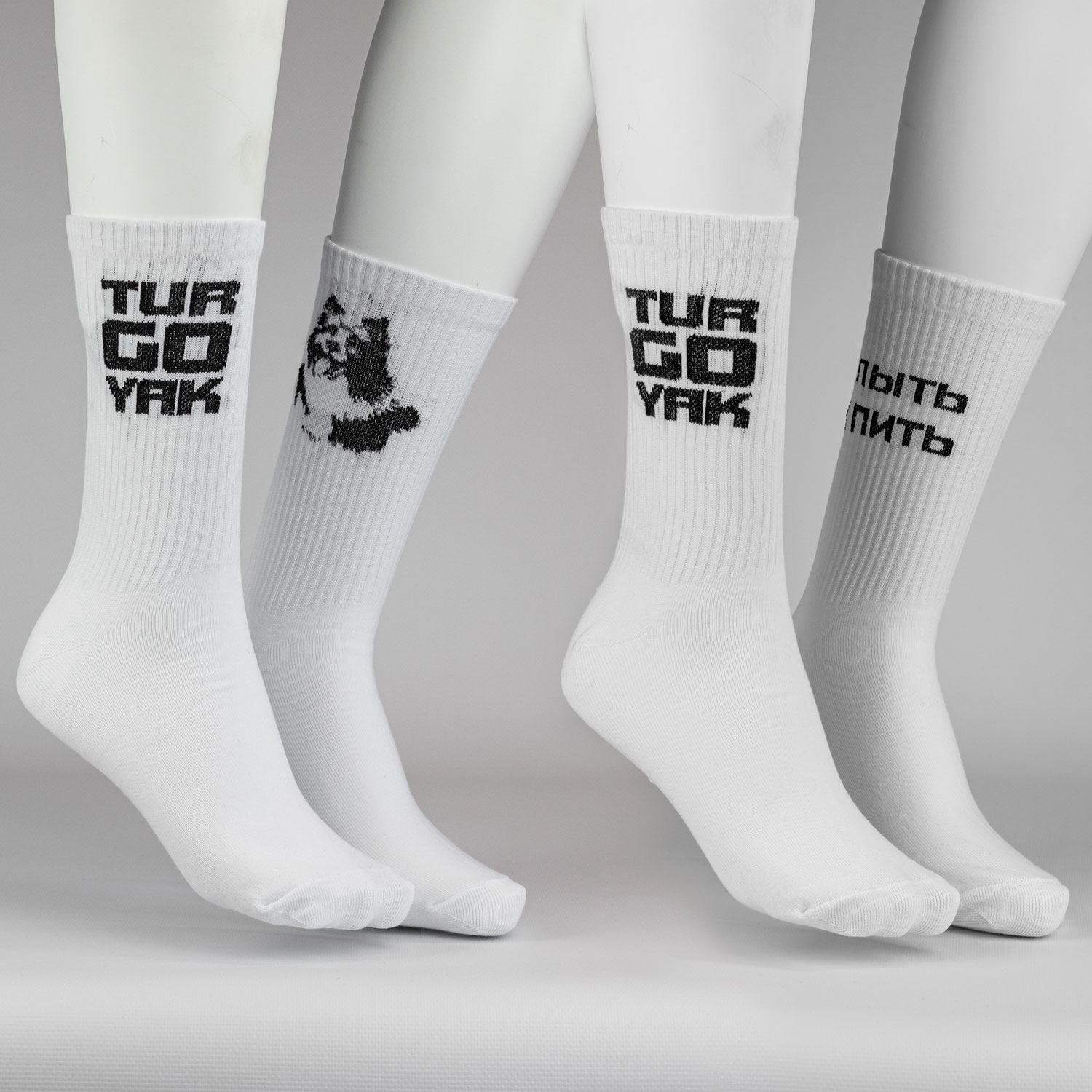 Мужские носки белого цвета от бренда «Тургояк Территория Спорта» с разнообразным дизайном: надписью «Плыть и пить» или собакой-талисманом Тедди. Изготовлены из мягкого хлопка (85 %), полиамида (12 %) и эластана (3 %) для плотной посадки, воздухопроницаемости и износостойкости. Универсальны — подходят для любого времени года, обеспечивают комфорт при повседневной носке и активном образе жизни. Идеально сочетаются с кроссовками, кедами, дополняя спортивный или повседневный образ. Практичность, качество и фирменный стиль в каждой паре.