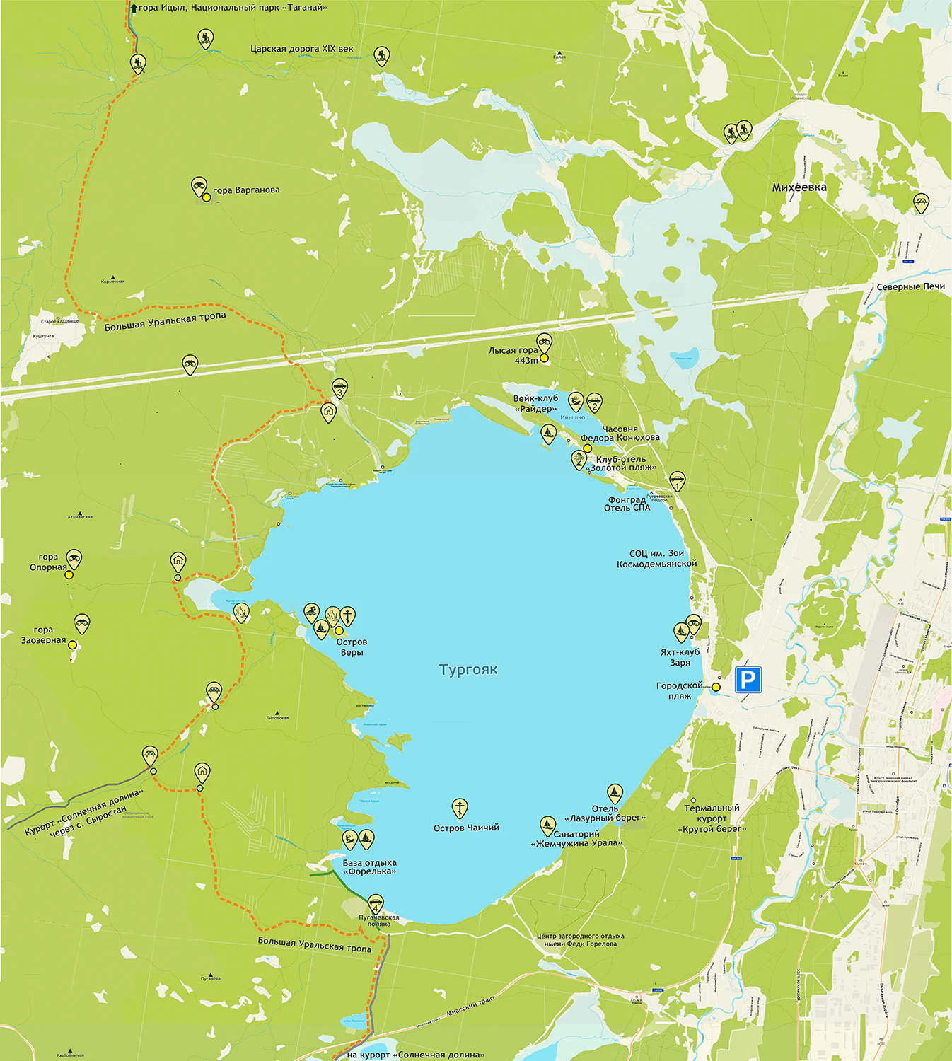 Это маршрут длиною в 1800 км, который можно пройти как целиком, так и отдельными участками. Большая Уральская тропа рассчитана на людей, вне зависимости от уровня их подготовки. Тропа идет по красивейшим местам вдоль Уральского хребта с юга от Магнитогорска на север до Красновишерска или в обратном направлении.