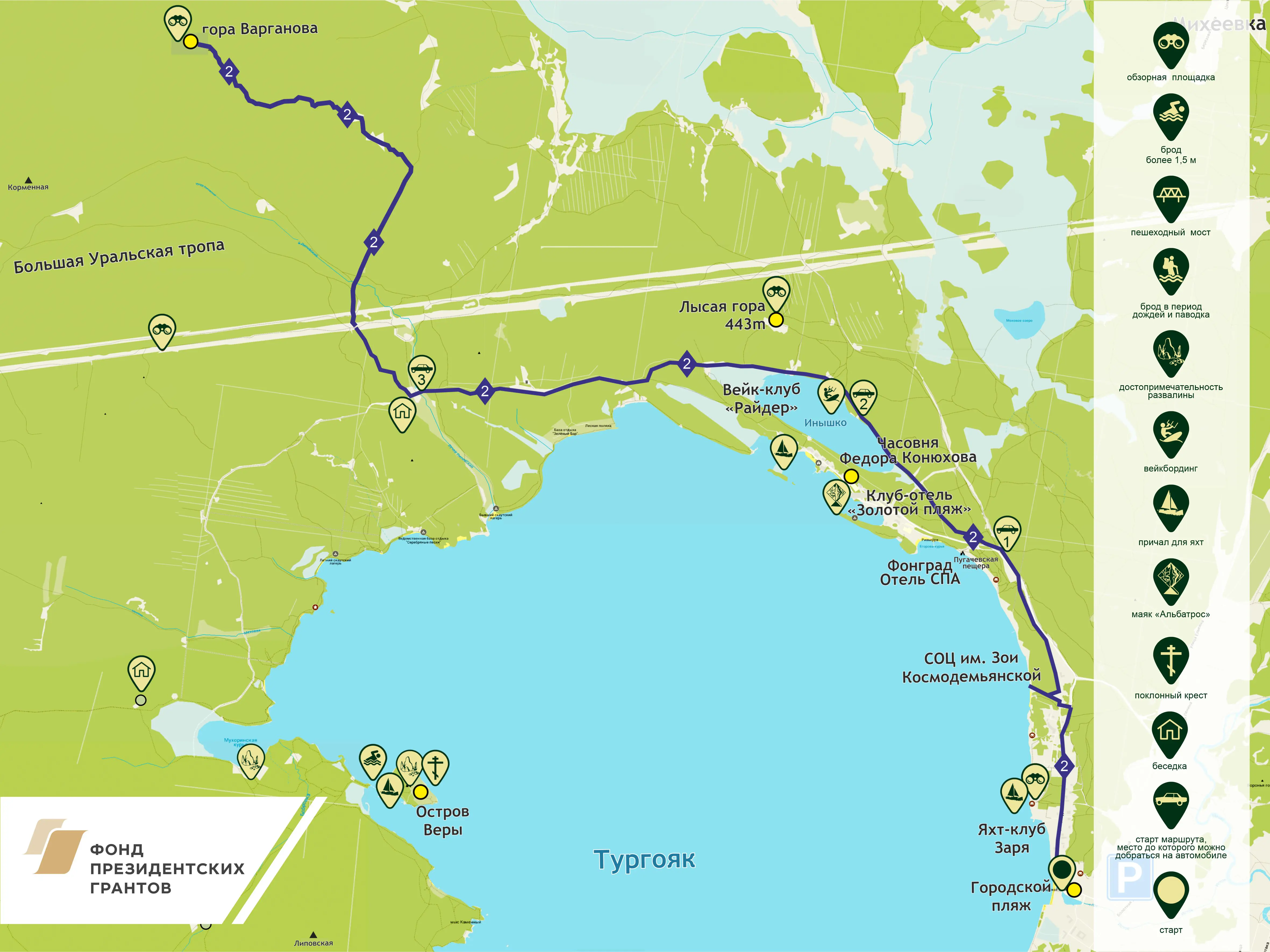 Однодневный, радиальный круглогодичный пешеходный маршрут с посещением самой высокой горы в Ильменской долине. Проходит вдоль озера Инышко с двойным дном, возможен радиальный выход на гору Лысая и смотровую площадку. С горы Варганова открывается вид на о. Инышко, о. Тургояк и всю «Золотую долину». Варганова гора — отдельно стоящая гора, относящаяся к Заозёрному хребту. Её длина по подошве — 3 километра, ширина — 3,5 километра. Абсолютная высота — 763 метра, относительная (над рекой Куштумга) — 360 метров.