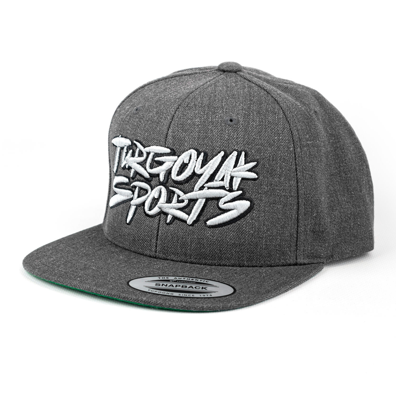 Темно-серая бейсболка с твердой передней панелью и прямым козырьком от корейского бренда FLEXFIT (ФЛЕКСФИТ), фасон Snapback (снепбек). Модель выполнена из плотного смесового материала, состоящего из акрила и шерсти (80%/20%). На передней панели объемная вышивка в стиле граффити Turgoyak Sports (Тургояк спорт). Внутри козырек отделан контрастным ярко-зеленым материалом, сзади пластиковая застежка для регулировки размера.