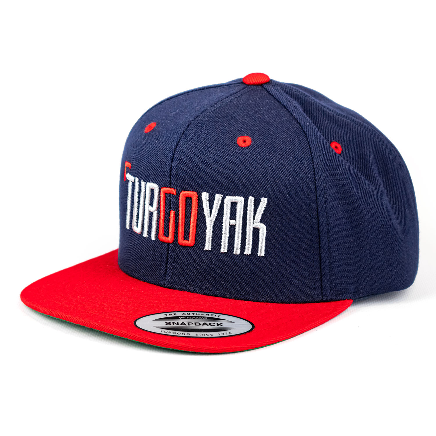 Темно-синяя бейсболка с твердой передней панелью и прямым козырьком от корейского бренда FLEXFIT (ФЛЕКСФИТ), фасон Snapback (снепбек). Модель выполнена из плотного смесового материала, состоящего из акрила и шерсти. (80%/20%). На передней панели объемная вышивка TURGOYAK (Тургояк). Сверху козырек красный, внутри козырек отделан контрастным ярко-зеленым материалом, сзади пластиковая застежка для регулировки размера.