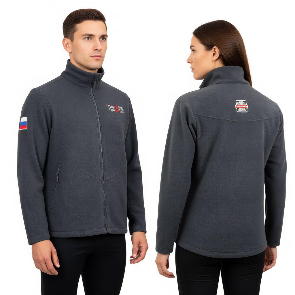 Толстовка флисовая TURGOYAK без капюшона — это стильная кофта длиной до бедра, выполненная в прямом крое без резинки по низу, застегивается на молнию. По бокам расположены карманы на молниях. Состав ткани — 100% полиэстер, гипоаллергенный, воздухопроницаемый и устойчивый к деформации материал. Лицевая сторона ткани имеет приятный на ощупь ворс, а изнанка — гладкую поверхность. Декор изделия включает вышивку слова TURGOYAK на груди, флаг РФ на правом плече и логотип Turgoyak Sports Territory на спине.