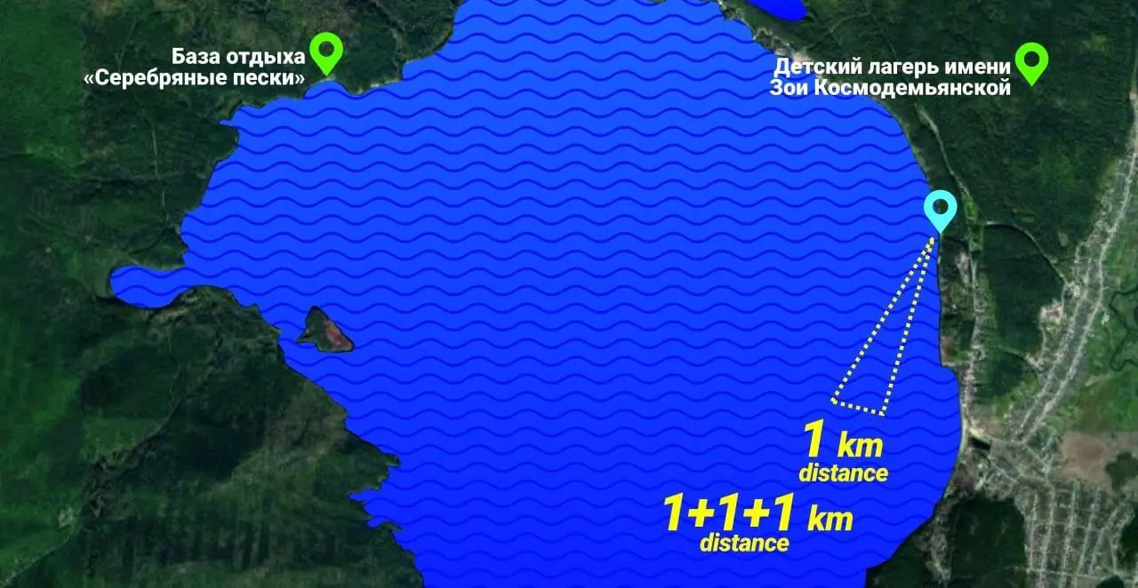 Участники стартуют с берега. Проплывают дистанцию, оплывая буи против часовой стрелки (с правой стороны, оставляя буй слева). Старт и финиш находится в одном месте на пляже. Эстафетная дистанция аналогична схеме 1 км; участники сменяют друг друга на берегу в месте старта-финиша.